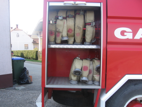- oprema: osnovna (črpalka z armaturami in cevmi), dodatna (top, hitra cev, ročnik z 2 l posodo za penilo in 25 litrska posoda s penilom, motorna žaga, protipožarne metle, hidrantni nastavek s ključem, krampi, lopate, osebna zaščitna oprema, prometna signalizacija itd…)